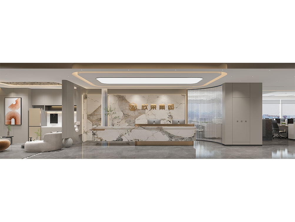 風(fēng)順集團(tuán)裝修效果以 “大氣沉穩(wěn) + 現(xiàn)代高效” 為核心,整體采用深灰、米白為主色調(diào)搭配金屬線條點(diǎn)綴,凸顯企業(yè)質(zhì)感。前臺(tái)接待區(qū)用大理石背景墻嵌入集團(tuán) LOGO,搭配簡(jiǎn)約大氣的接待臺(tái)與藝術(shù)擺件,營(yíng)造專(zhuān)業(yè)第一印象;濟(jì)南辦公室裝修為開(kāi)放辦公區(qū)采用模塊化工位設(shè)計(jì),配備獨(dú)立收納與人體工學(xué)座椅,墻面穿插集團(tuán)發(fā)展歷程掛畫(huà)與綠植,兼顧高效與舒適;會(huì)議室按規(guī)模配置高清會(huì)議系統(tǒng)與吸音材質(zhì),滿足不同商務(wù)需求;同時(shí)預(yù)留休閑茶水區(qū)與榮譽(yù)展示墻,既方便員工放松,也直觀傳遞企業(yè)實(shí)力,整體空間兼具品牌形象與實(shí)用功能。