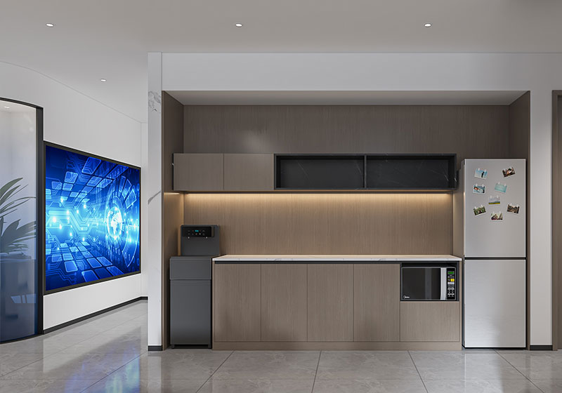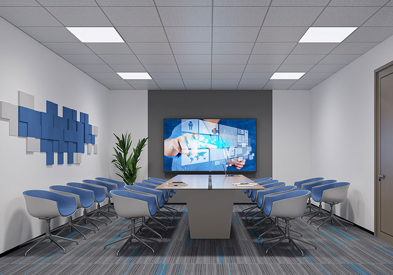 會(huì)議區(qū)選用灰白拼接辦公椅,搭配長(zhǎng)條會(huì)議桌,適配團(tuán)隊(duì)協(xié)作需求;大屏顯示設(shè)備與墻面綠植相襯,在實(shí)用功能中注入活力。整體布局貼合濟(jì)南辦公室裝修的實(shí)用與美學(xué)結(jié)合趨勢(shì),既滿足企業(yè)技術(shù)交流場(chǎng)景,又彰顯科技公司的專(zhuān)業(yè)質(zhì)感。